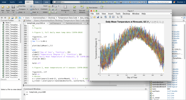 Each of us focused on a different variable (temperature, precipitation or ice cover) and played around with its data using Matlab, a great coding program used for plotting graphs and other complex math functions.